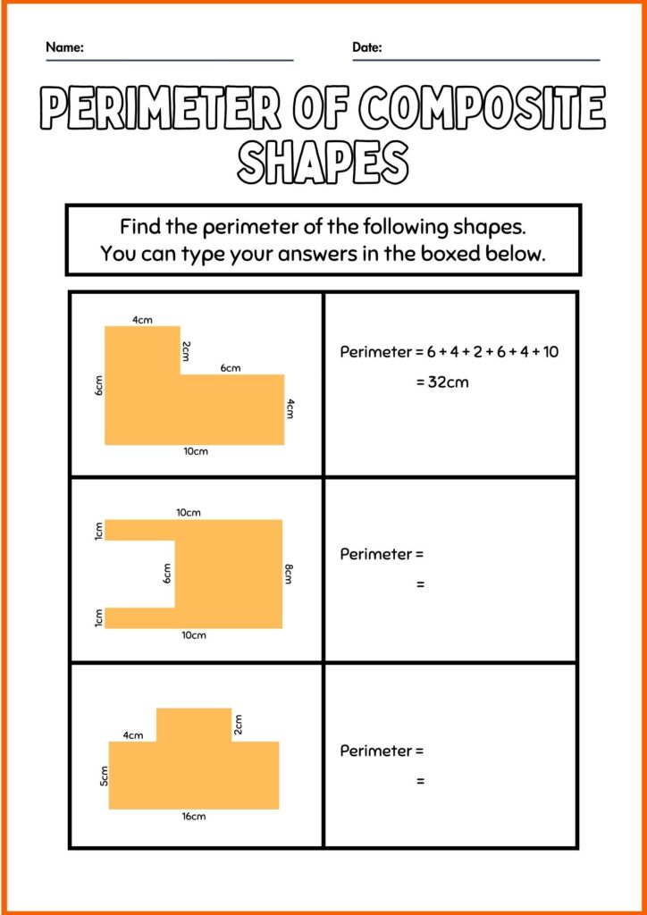 This Area of Compound Shapes Worksheet with Answers is a practice worksheet for students who want to learn how to find the area of complex shapes. It is made up of two or more simple shapes (like rectangles, squares, triangles, or circles). Whether you are in grade 5, grade 6, grade 8, or grade 9, this worksheet will help you understand how to break down compound shapes into smaller, easier-to-calculate parts and then find the total area.