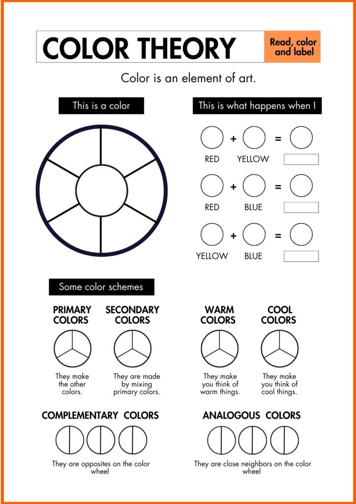 This Color Theory Worksheets set is a fun and easy way for students to learn about colors, how they work together, and how to use them creatively. Whether you are in grade 5, grade 6, grade 8, or grade 9, these worksheets will help you understand the basics of color theory while improving your art skills.