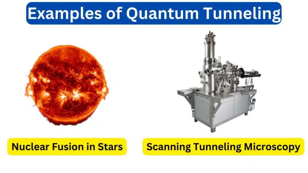 Nuclear Fusion in Stars is a very common example of quantum tunneling. In stars like the Sun, quantum tunneling allows atomic nuclei to overcome the Coulomb barrier (a repulsive force due to the positive charges of protons) and fuse together to form heavier elements. This process is crucial for the star’s energy production.