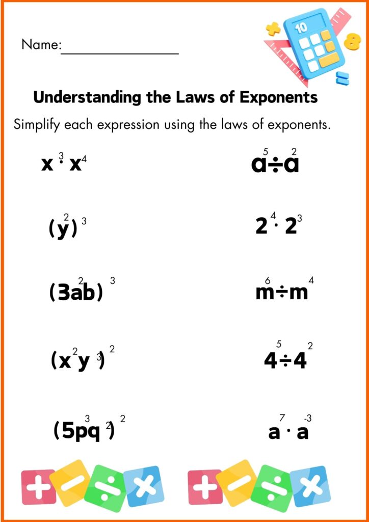 - Easy to Understand: The worksheet breaks down exponent rules in a simple way, making it easier for you to learn.