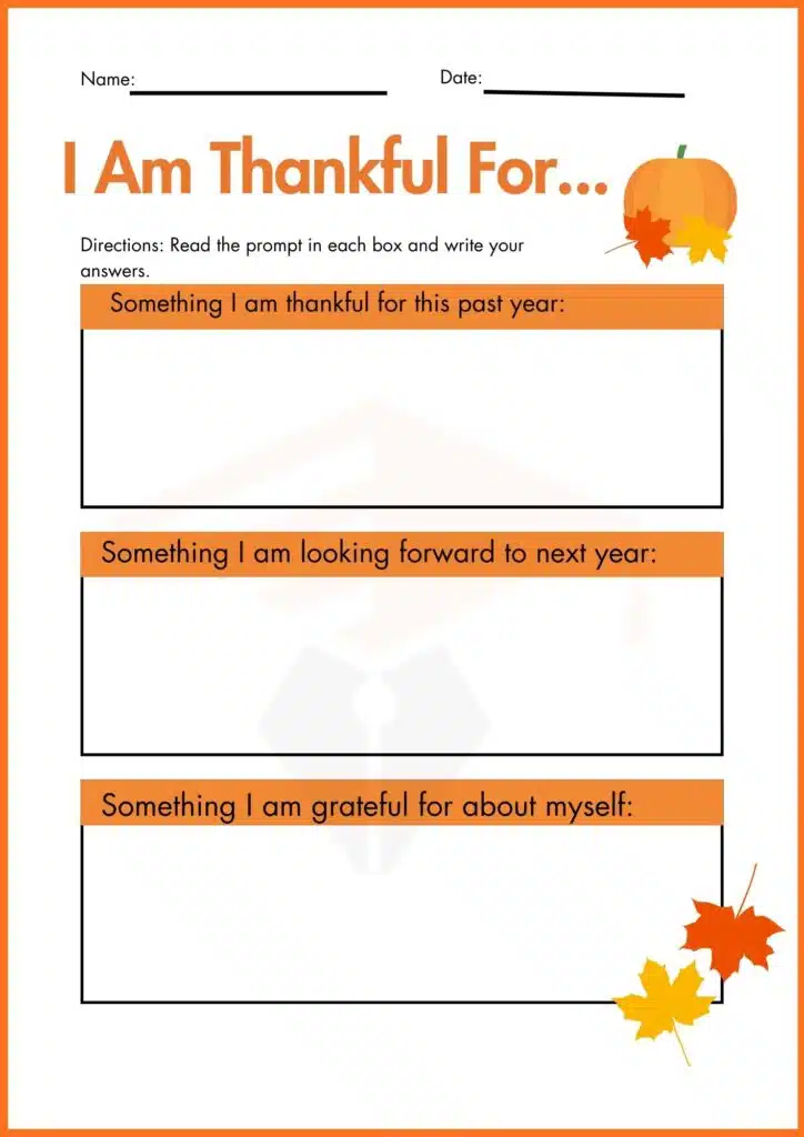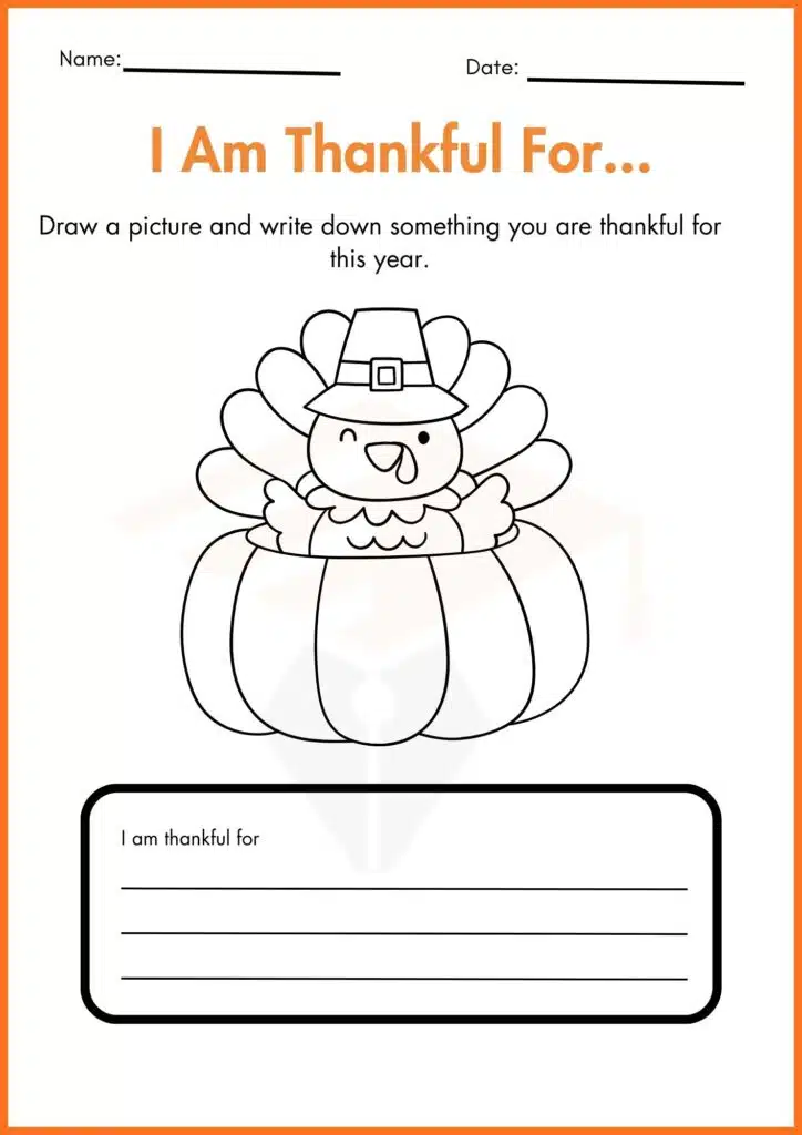 Download our “I Am Thankful For” Worksheet to encourage kids to reflect on gratitude. This simple and engaging worksheet allows students to write or draw the things they are thankful for.