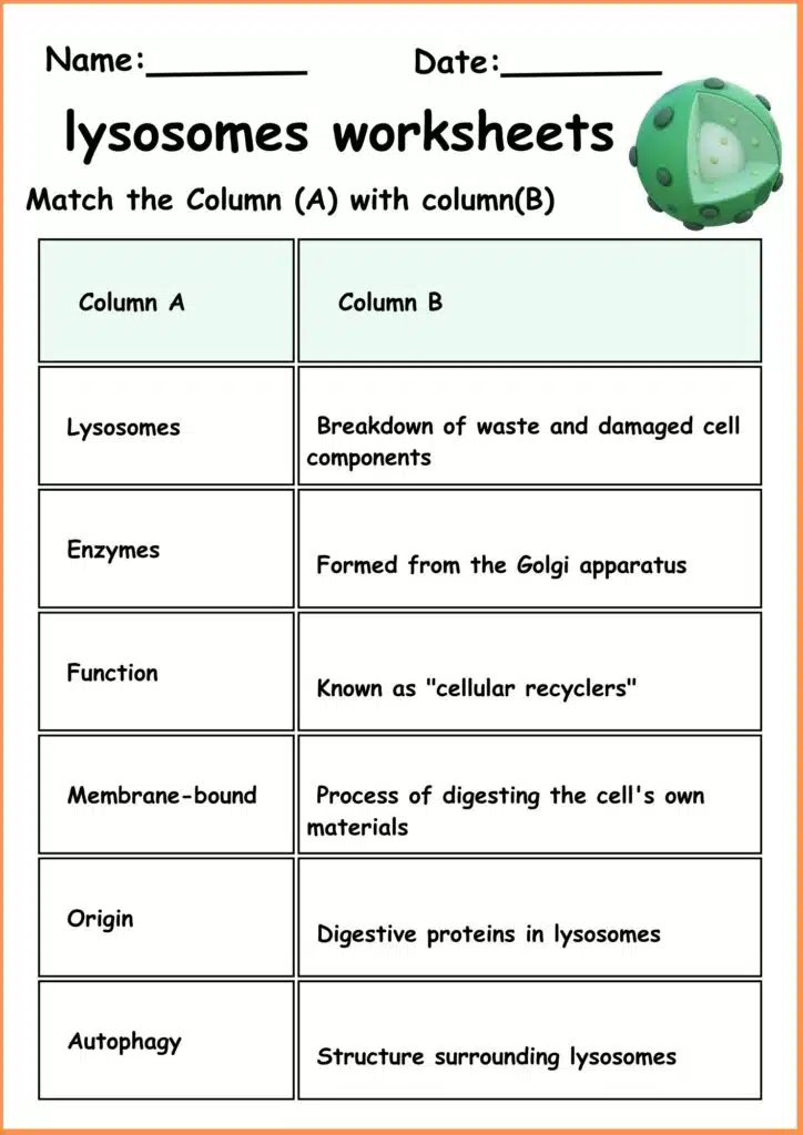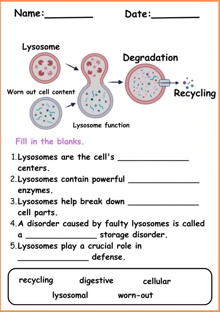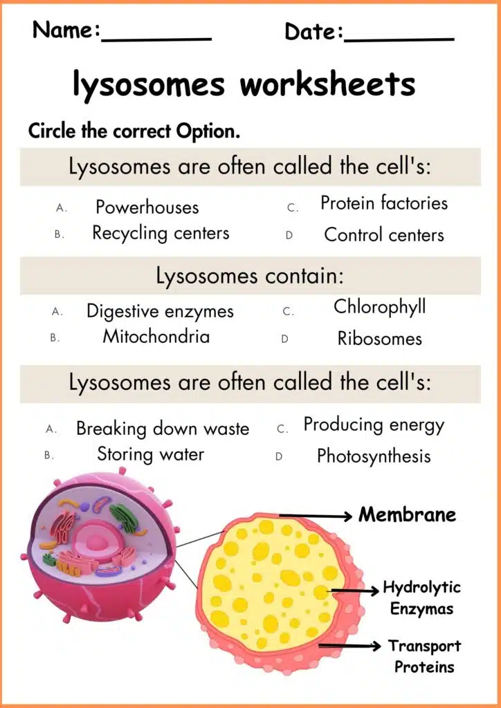 Download the lysosomes worksheet. This worksheet on lysosomes is designed to help students understand the structure and functions of these important cell organelles.