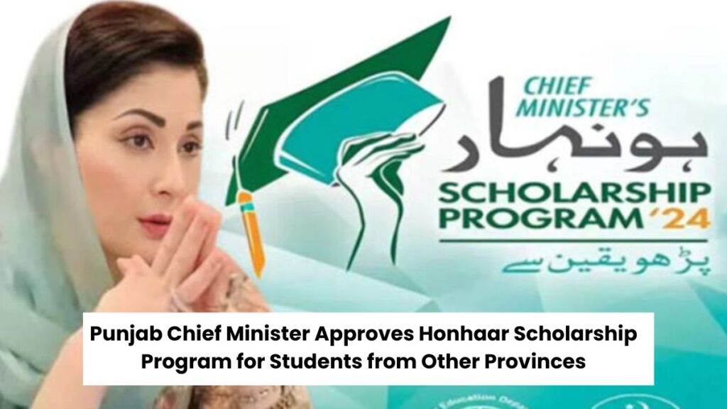 Punjab Chief Minister Maryam Nawaz Sharif has approved the Honhaar Scholarship program for students from other provinces. The program ensures equal opportunities for students from regions like Azad Kashmir, Gilgit-Baltistan, Balochistan, and Khyber Pakhtunkhwa.