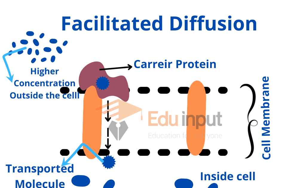 Large molecules and lipid insoluble molecules need assistance for movement which is provided by protein carriers. It does not need energy. A carrier protein binds with a molecule in the plasma membrane. It is transported from an area of higher concentration to an area of lower concentration.