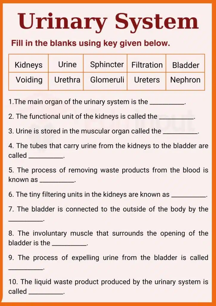 These urinary system worksheets for all grades are designed to help students understand the structure and function of the urinary system. They provide engaging activities and exercises to increase knowledge of how the body processes and eliminates waste, suitable for various learning levels.